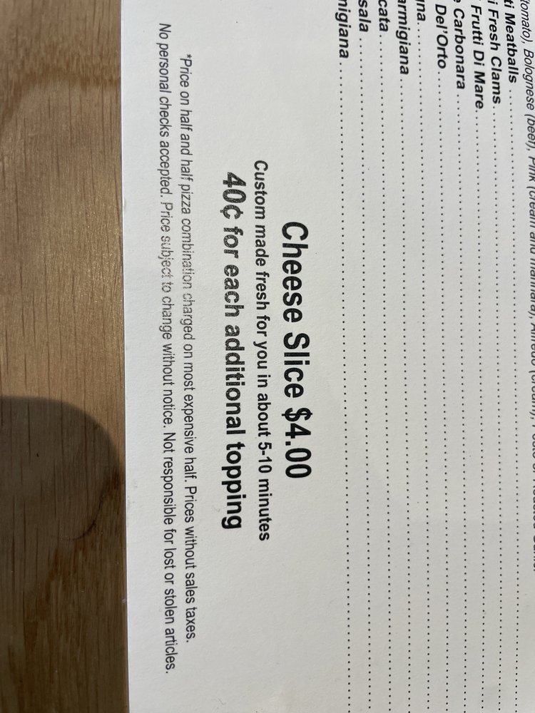Choice of marinara (tomato), bolognese (beef), arrabiata (spicy tomato with mushrooms), pink (cream and marinara), Alfredo (cream), pesto, or roasted garlic